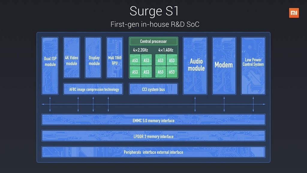 Để hoàn thiện được vi xử lý Surge S1, Xiaomi đã liên kết/hợp tác với rất nhiều các công ty khác về công nghệ, bao gồm cả nhiều công ty con dưới quyền Xiaomi.
