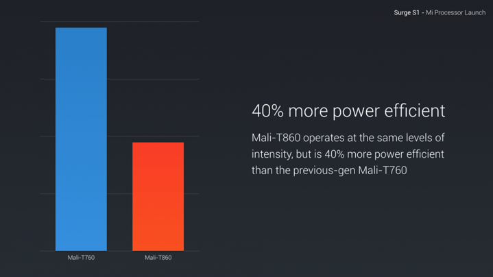 Surge S1 được tích hợp nhân đồ họa Mali-T860 4 lõi, tiết kiệm điện nặng hơn 40% so với Mali-T760 có cùng hiệu suất.