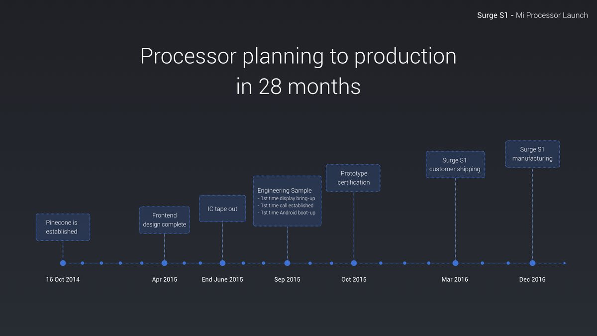Bộ vi xử lý Surge S1 được phát triển trong vòng 28 tháng kể từ ngày 16/10/2014.