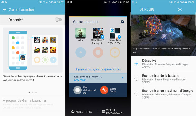 Khi Samsung ra mắt Galaxy S7 và S7 edge vào đầu năm nay. Samsung giới thiệu một cặp ứng dụng mới để tối ưu hóa chơi game được gọi là Game Launcher và Game Tools. Có thể tạo ra một thư mục, tự động chứa tất cả các trò chơi của người sử dụng, có thể làm vô hiệu hóa các phím cảm ứng của điện thoại để tránh bấm nhầm, vô hiệu hóa các cảnh báo, quay video màn hình chơi game, hoặc chụp màn hình.