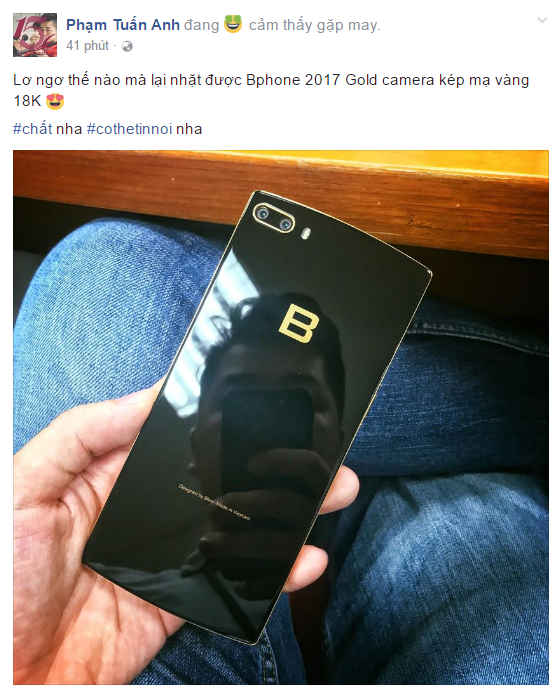 Ngay tại buổi lễ thì Bkav chỉ trưng bày Bphone 2017 để giới truyền thông cũng như khách mời được trải nghiệm. Còn phiên bản Bphone 2017 Gold thì không được trưng bày đã gây nên sự tò mò đối với dư luận. Mới đây trên trang Facebook của anh Phạm Tuấn Anh có đăng tải một hình ảnh được cho là Bphone 2017 Gold.