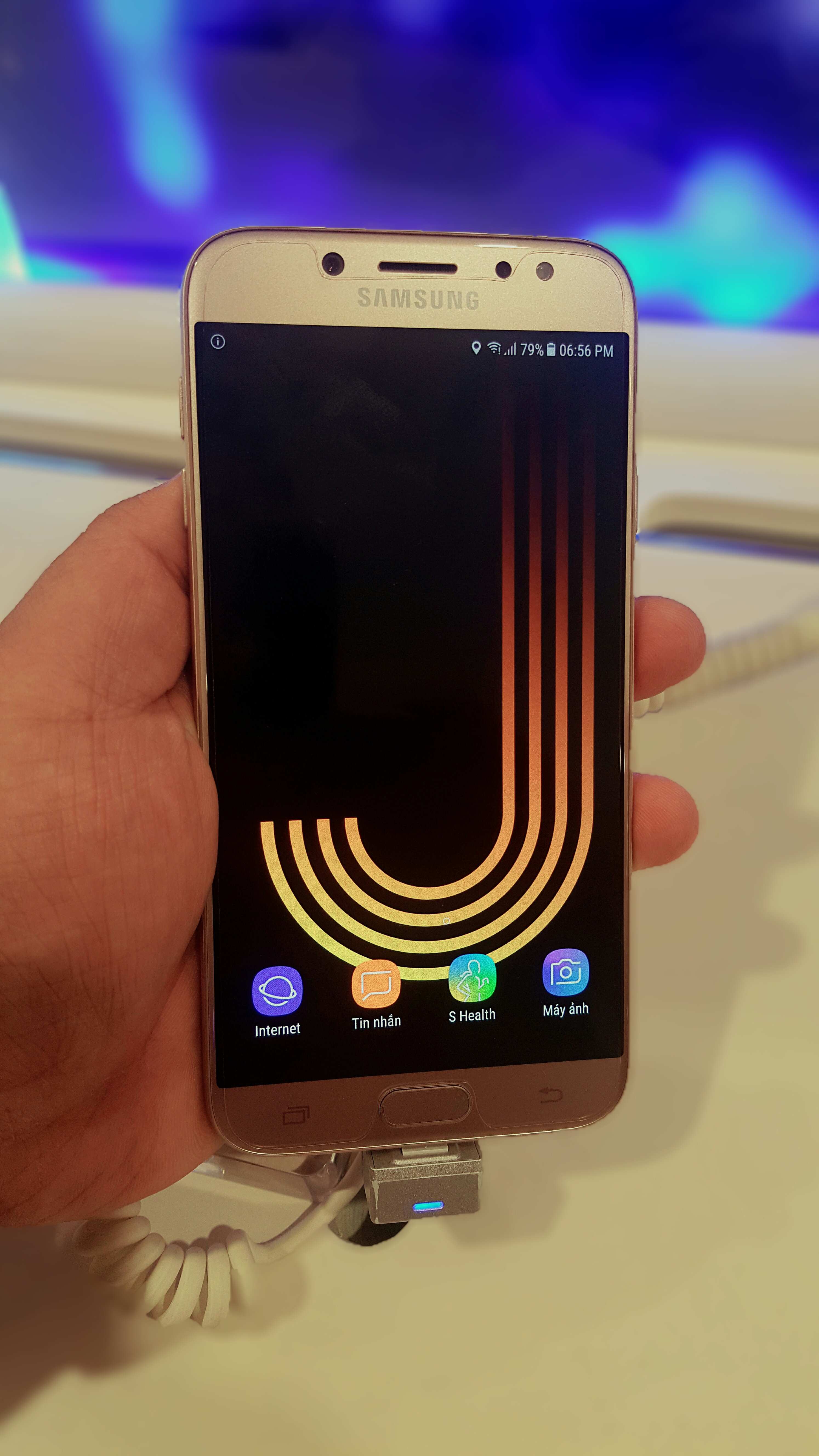 Mặc dù được ra mắt nửa cuối năm 2017 nhưng đáng tiếc máy vẫn dùng microUSB trong khi các máy 2017 của Samsung đã chuyển sang sử dụng USB C